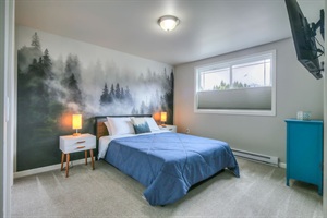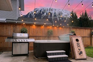 Step outside and the experience continues. The covered patio and built-in fire pit create the perfect setting for evening hangouts, rain or shine. The private hot tub is ideal for soaking after a long day of hiking or sightseeing, while the backyard offers space for games and fresh air.