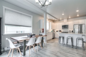Inside, the home is thoughtfully set up for group stays. The open living areas make it easy to gather, whether you're cooking meals in the full kitchen, sharing stories around the dining table, or unwinding in the living room after a day of exploring. With four bedrooms and a flexible sleeping layout, there’s plenty of room for everyone to spread out and recharge.