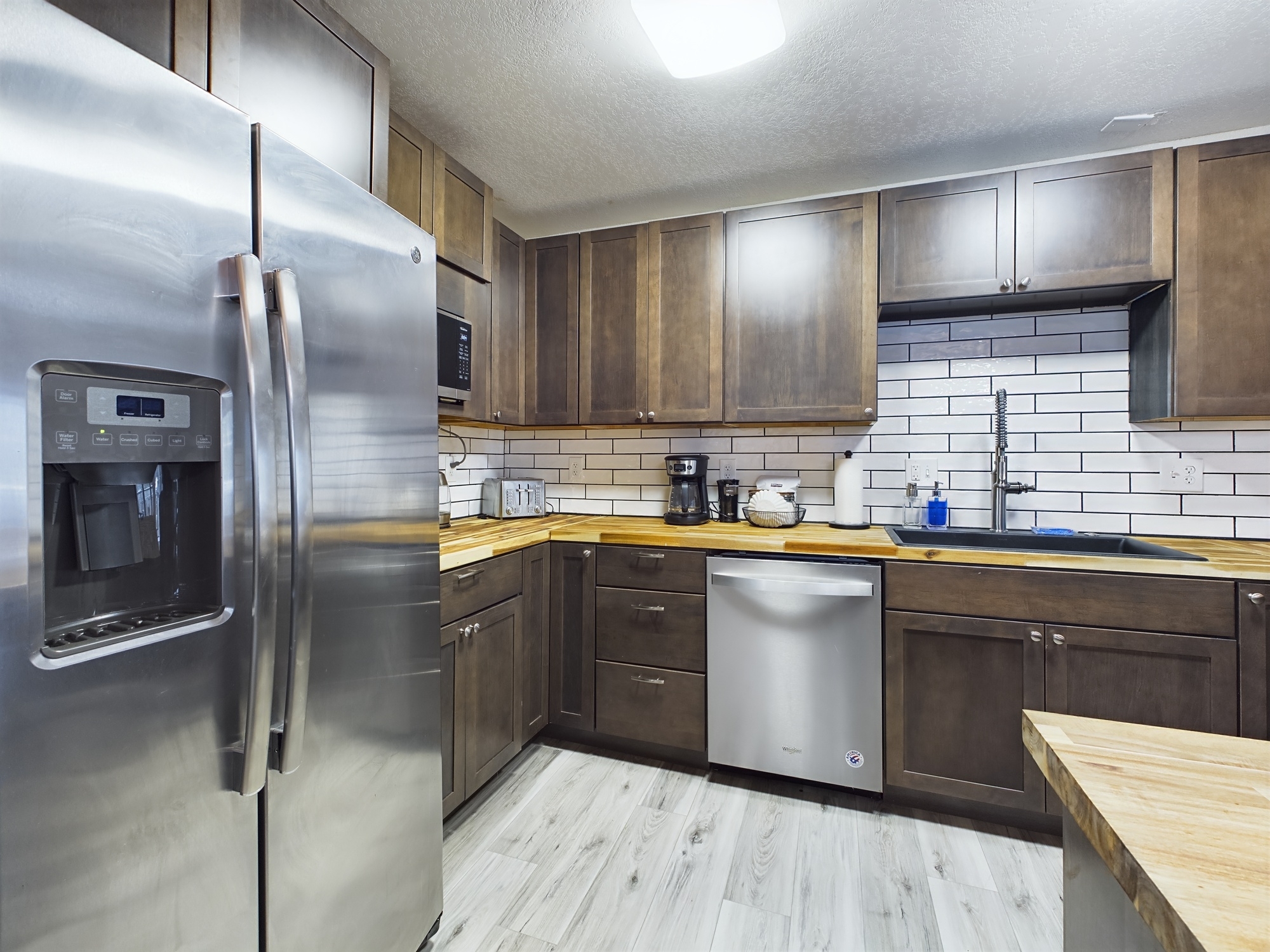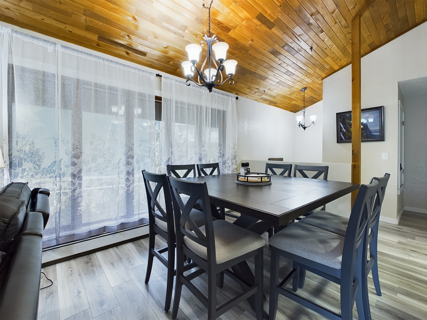 The open-concept living area is flooded with natural light, thanks to the large windows that showcase the stunning mountain and ocean views. The updated kitchen includes modern appliances, ample countertop space, and all the necessary cookware and utensils. Prepare delicious meals using fresh local ingredients or whip up a quick breakfast before heading out to explore the wonders of Juneau. The adjacent dining area features a large table where everyone can come together and enjoy meals with a view.