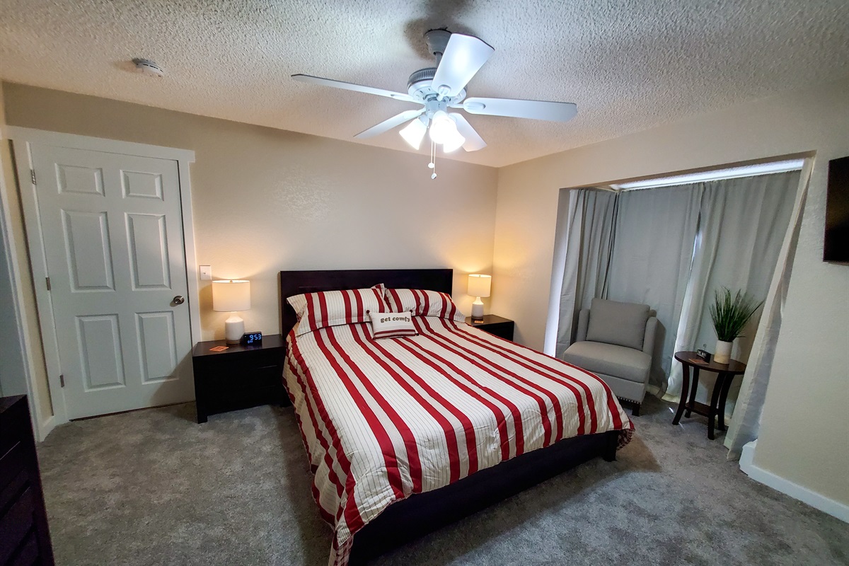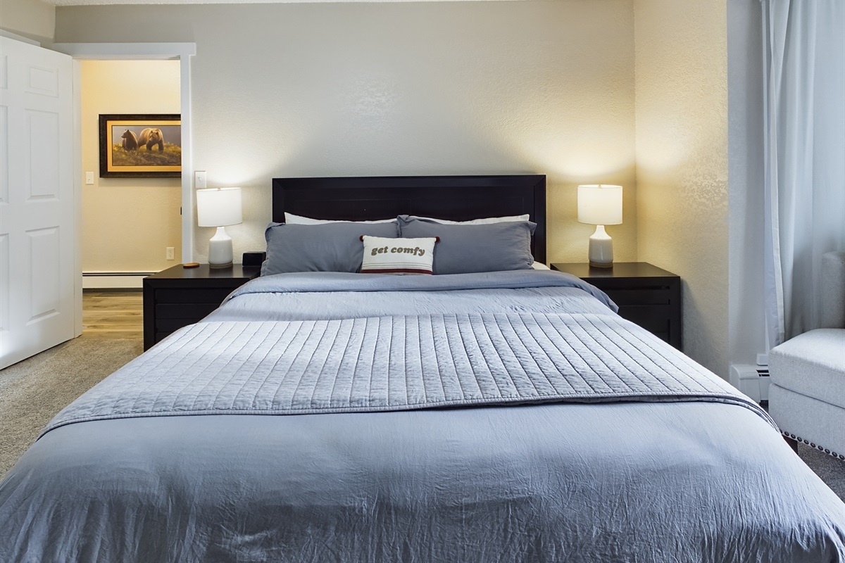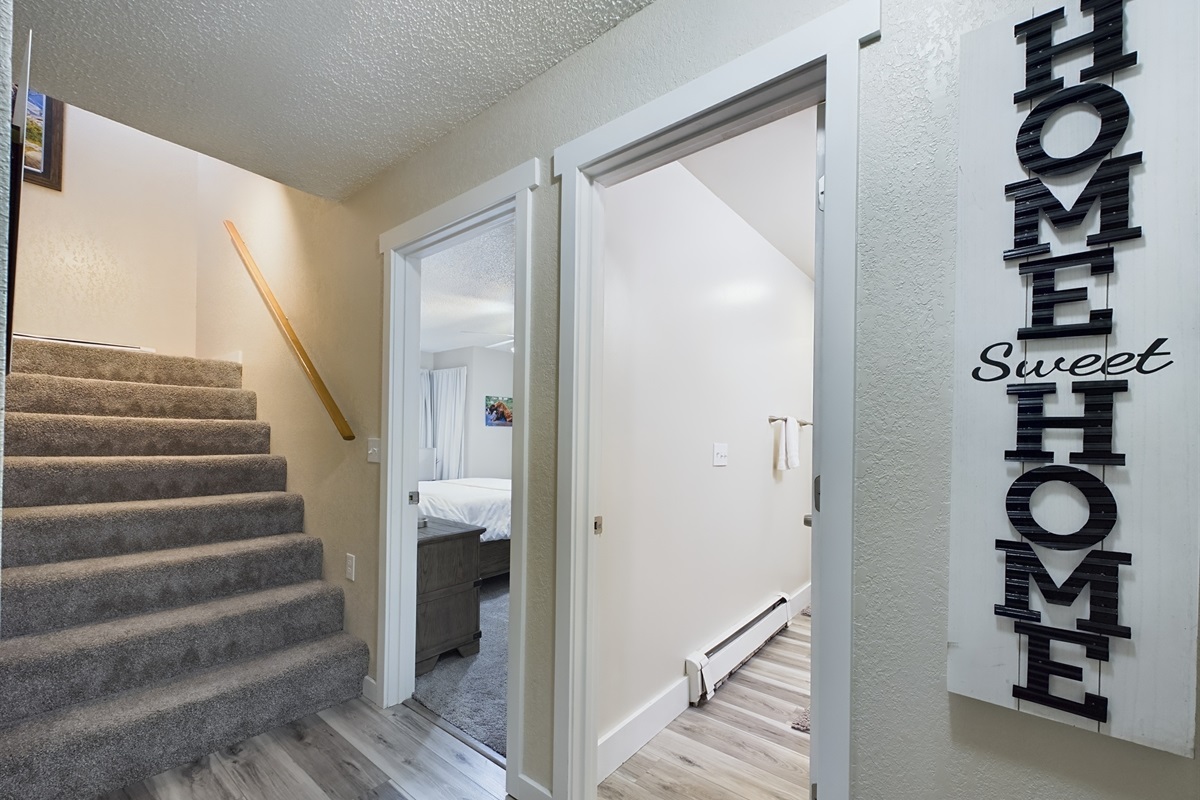 The two bathrooms are beautifully updated and equipped with modern fixtures and amenities. Fresh towels, toiletries, and a hairdryer are provided for your convenience.