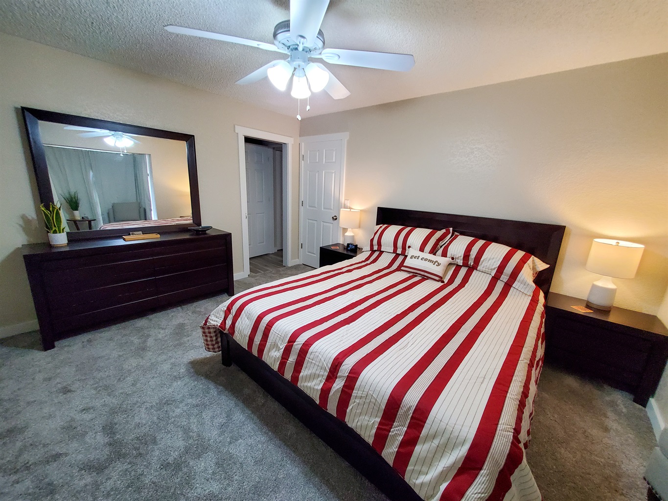 The home offers three comfortable and well-appointed bedrooms, ensuring a restful night's sleep for all guests. The master bedroom features a luxurious king-size bed, an en-suite bathroom.. The second and third bedrooms are equally inviting, each offering comfortable beds, ample storage space, and charming decor.